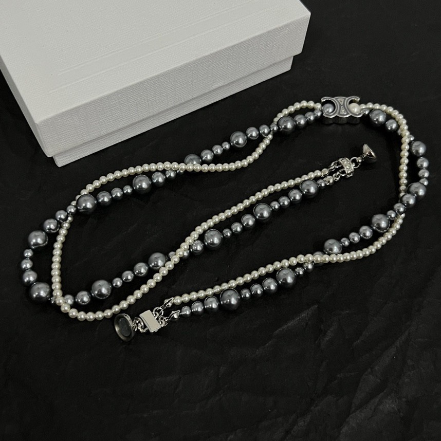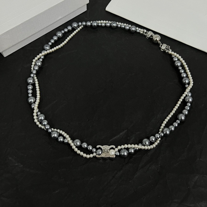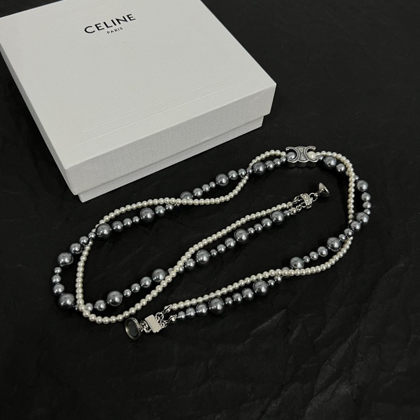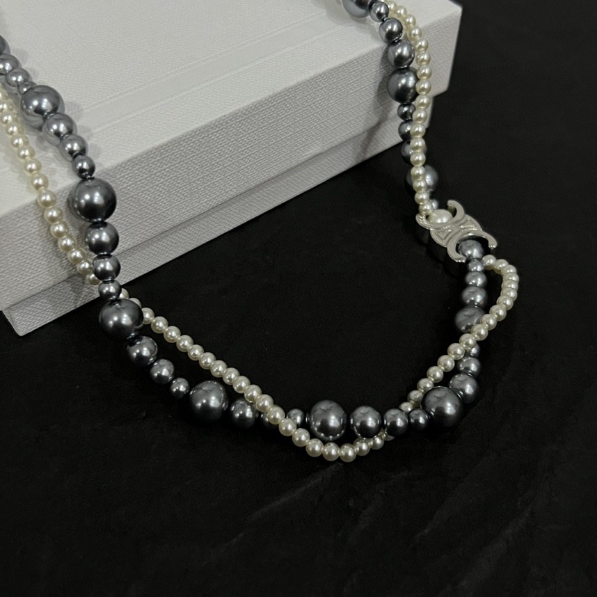 Celine Jewelry Necklace Pearl steel ball double-layer design