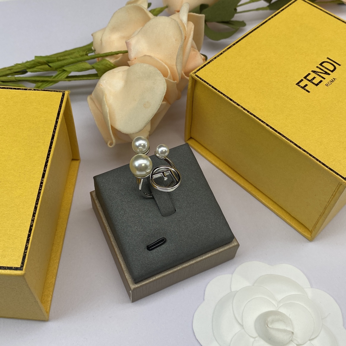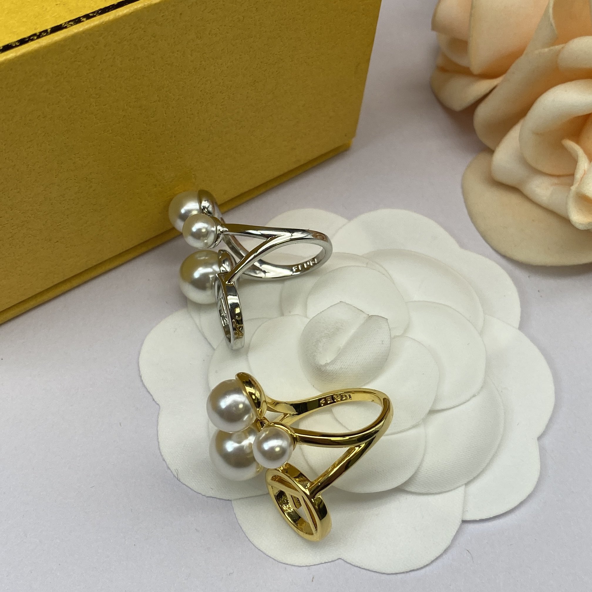 Fendi Jewelry Rings Pearl Cross Design