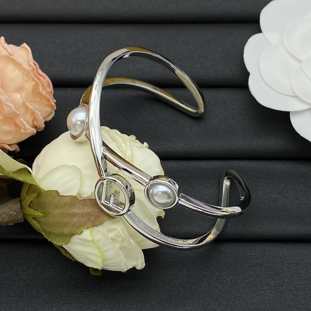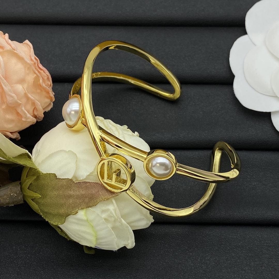 Fendi Jewelry Bangle Open Cross Pearl Design