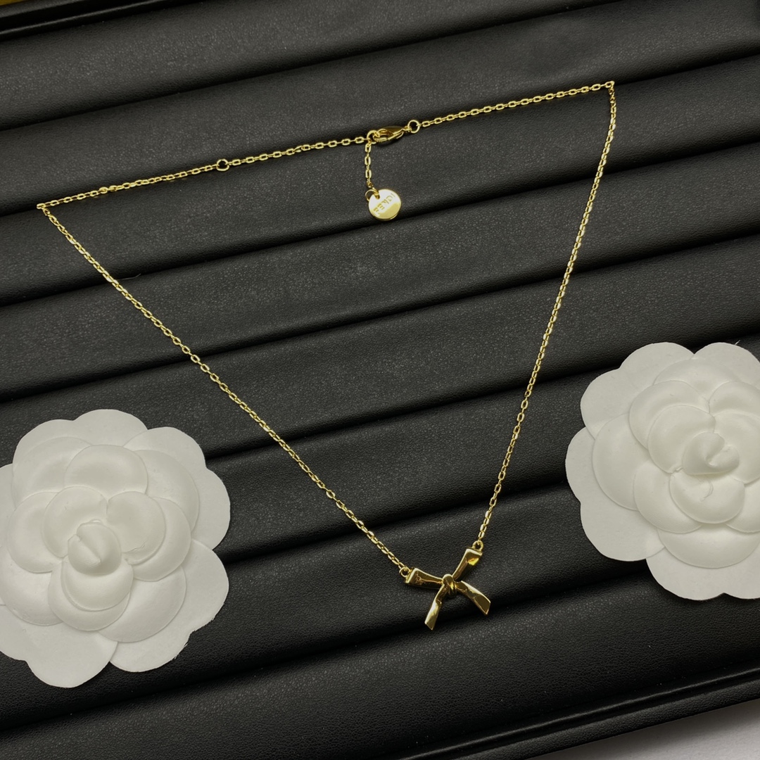 Fendi Jewelry Necklace Thin Chain Bow Design