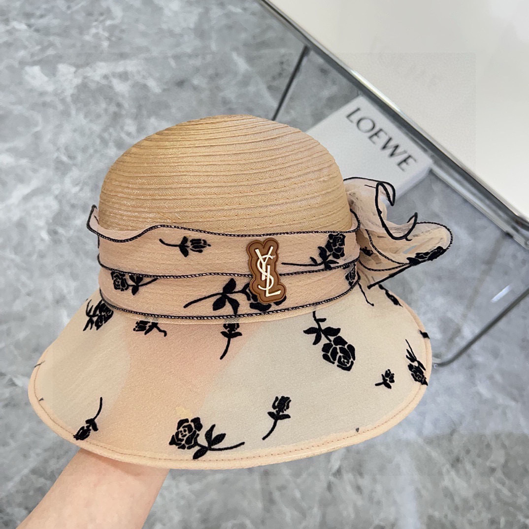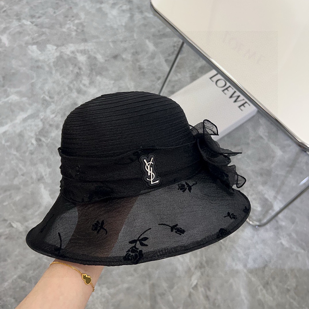 Saint Laurent Hat Organza Holiday Style Bucket Hat Straw Hat Accessories
