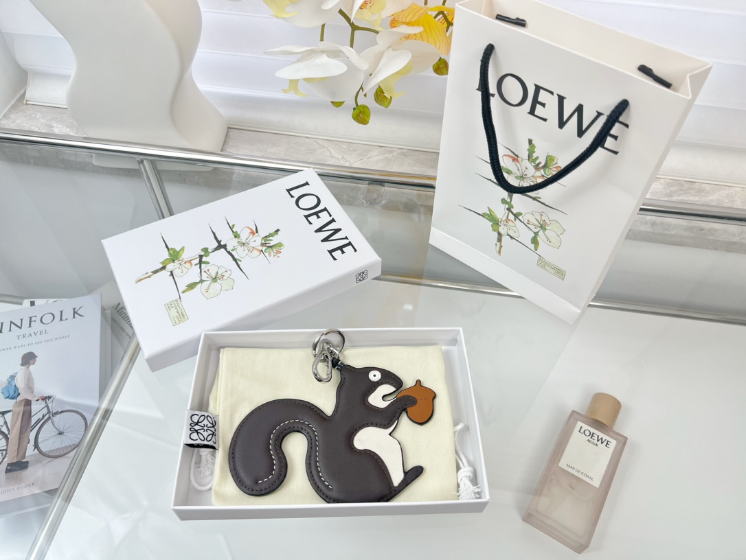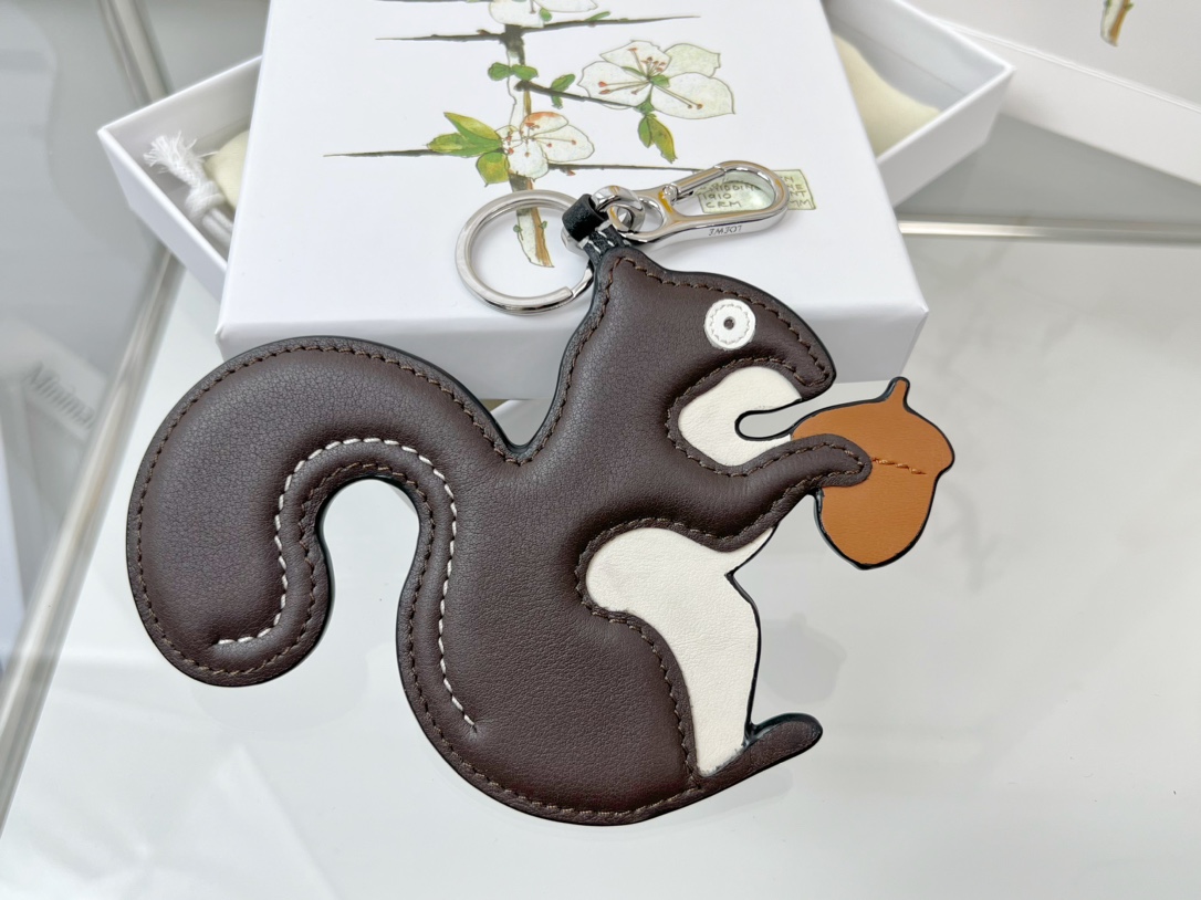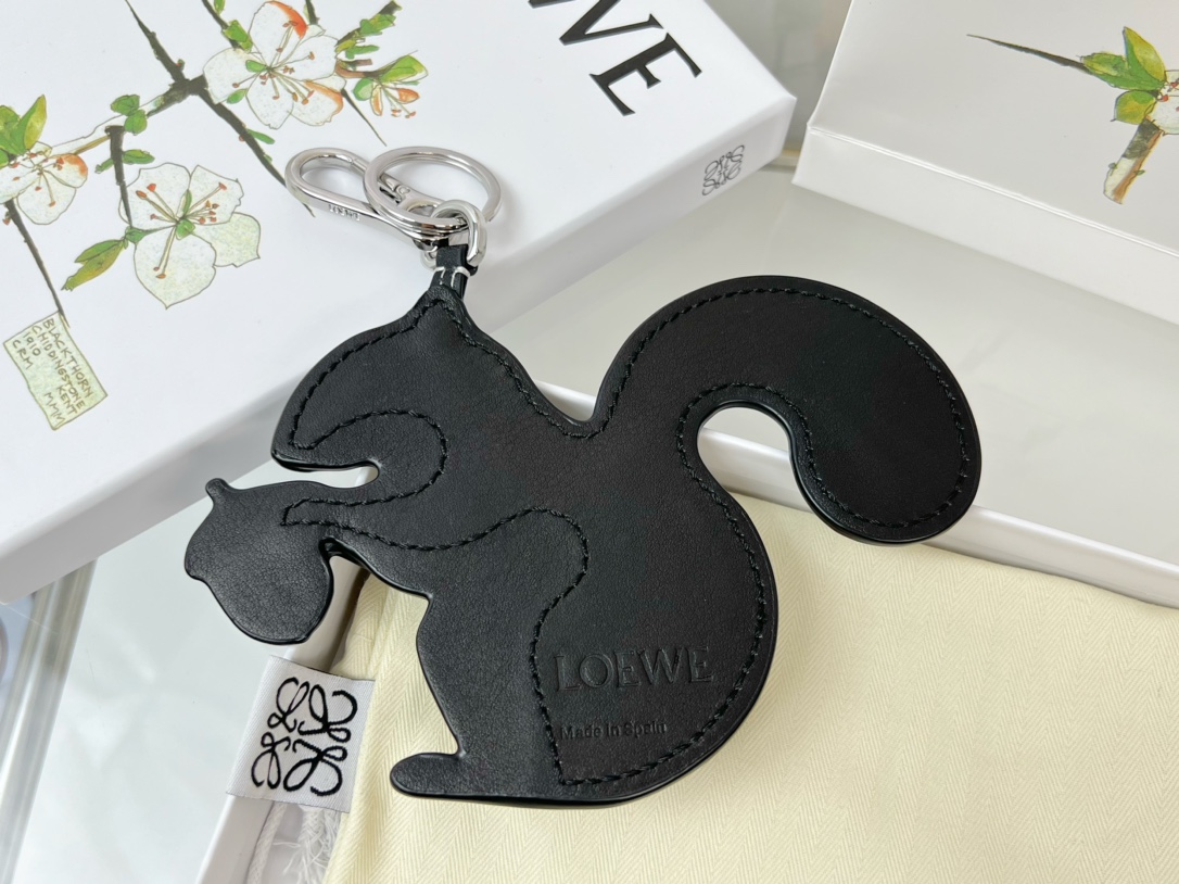 • Loewe Key Chain Squirrel Charm Imported Calfskin Keychain Pendant Accessories