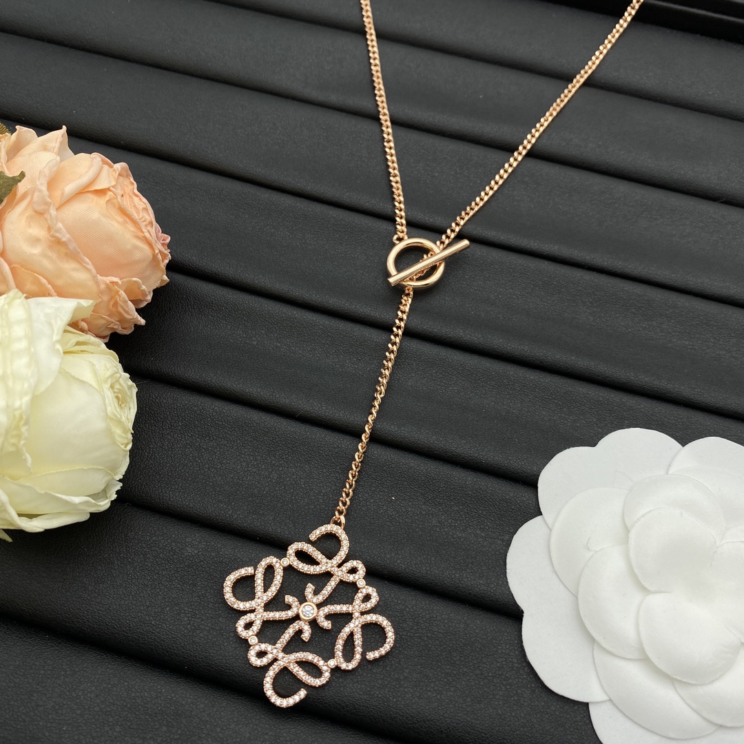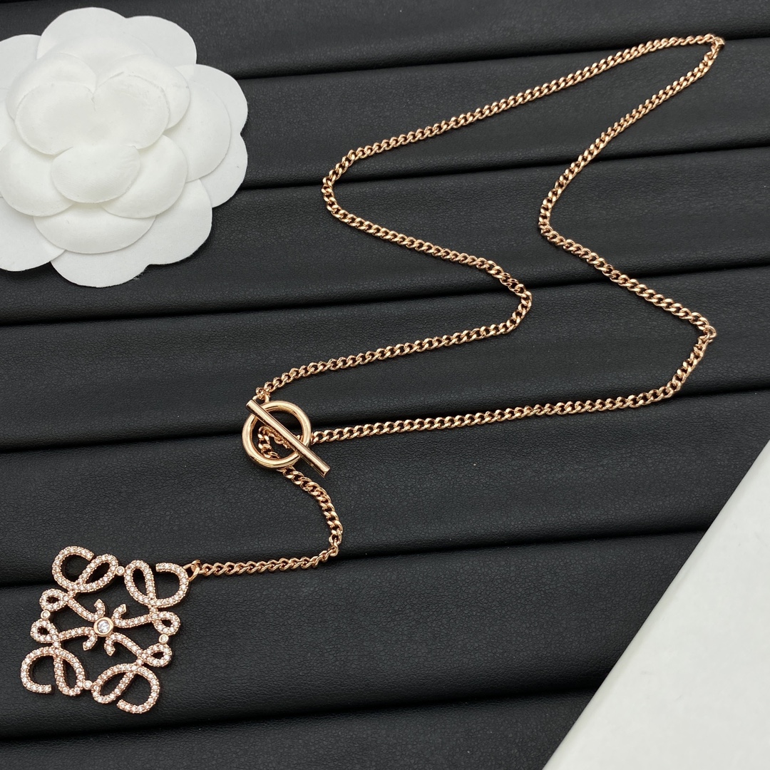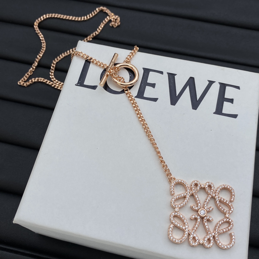 Loewe Jewelry Necklace Rhombus-Shaped Diamond Logo Pendant Necklace