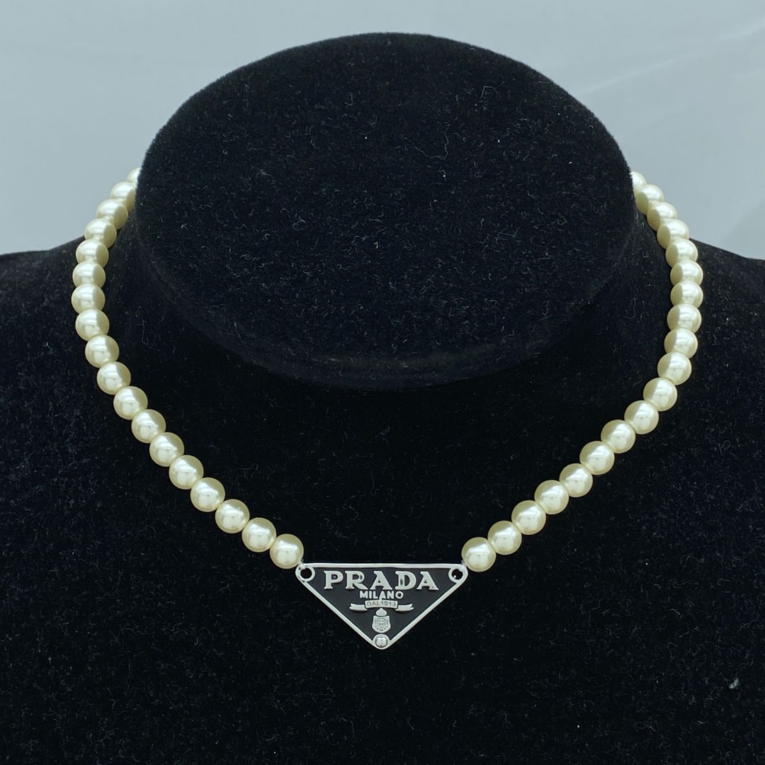 Prada Jewelry Necklace Pearl Triangle