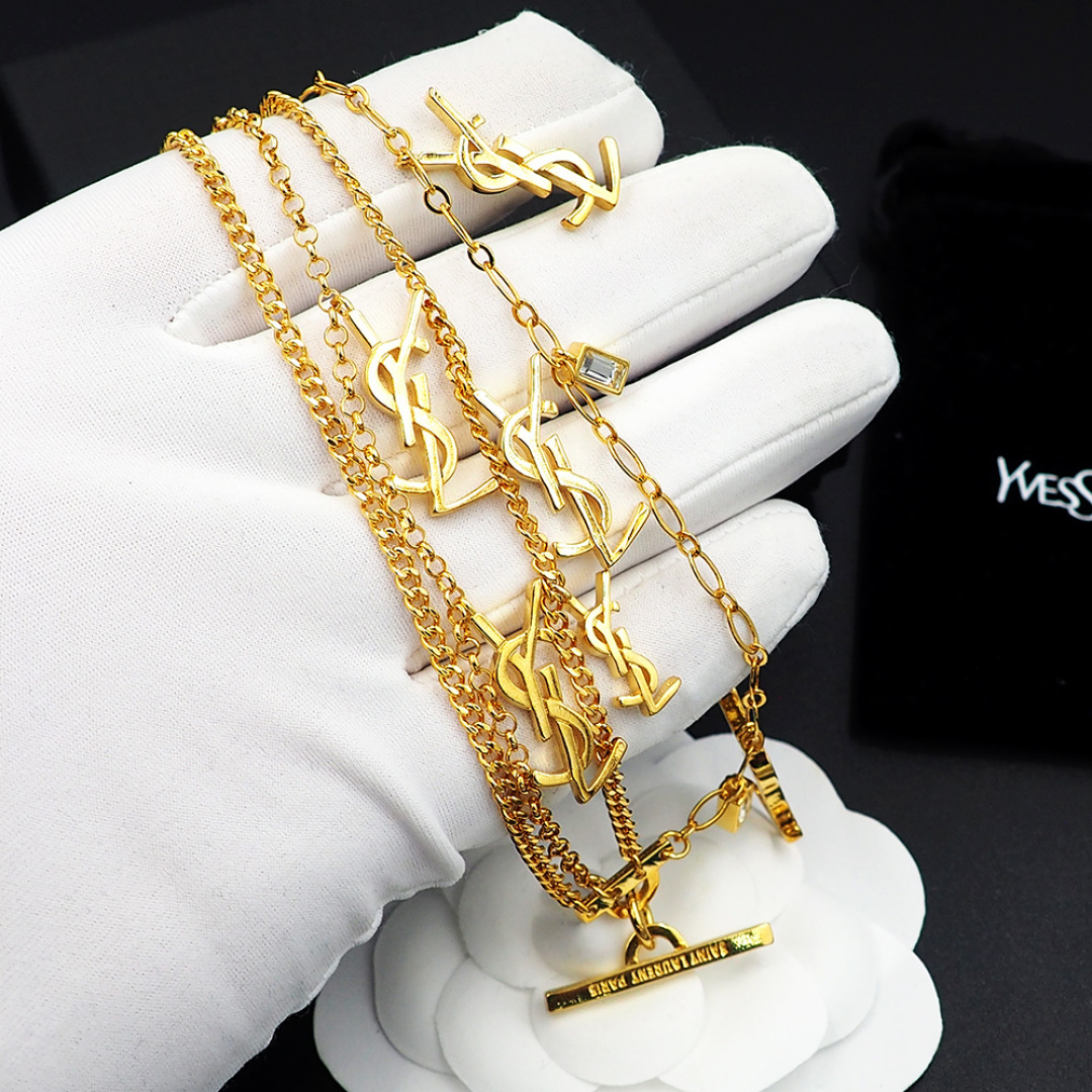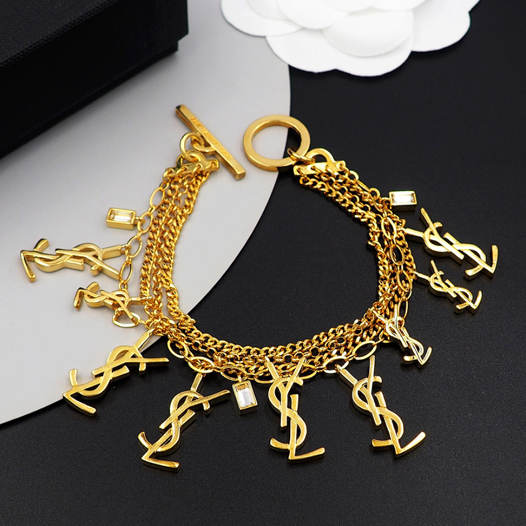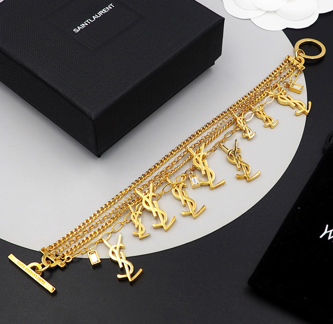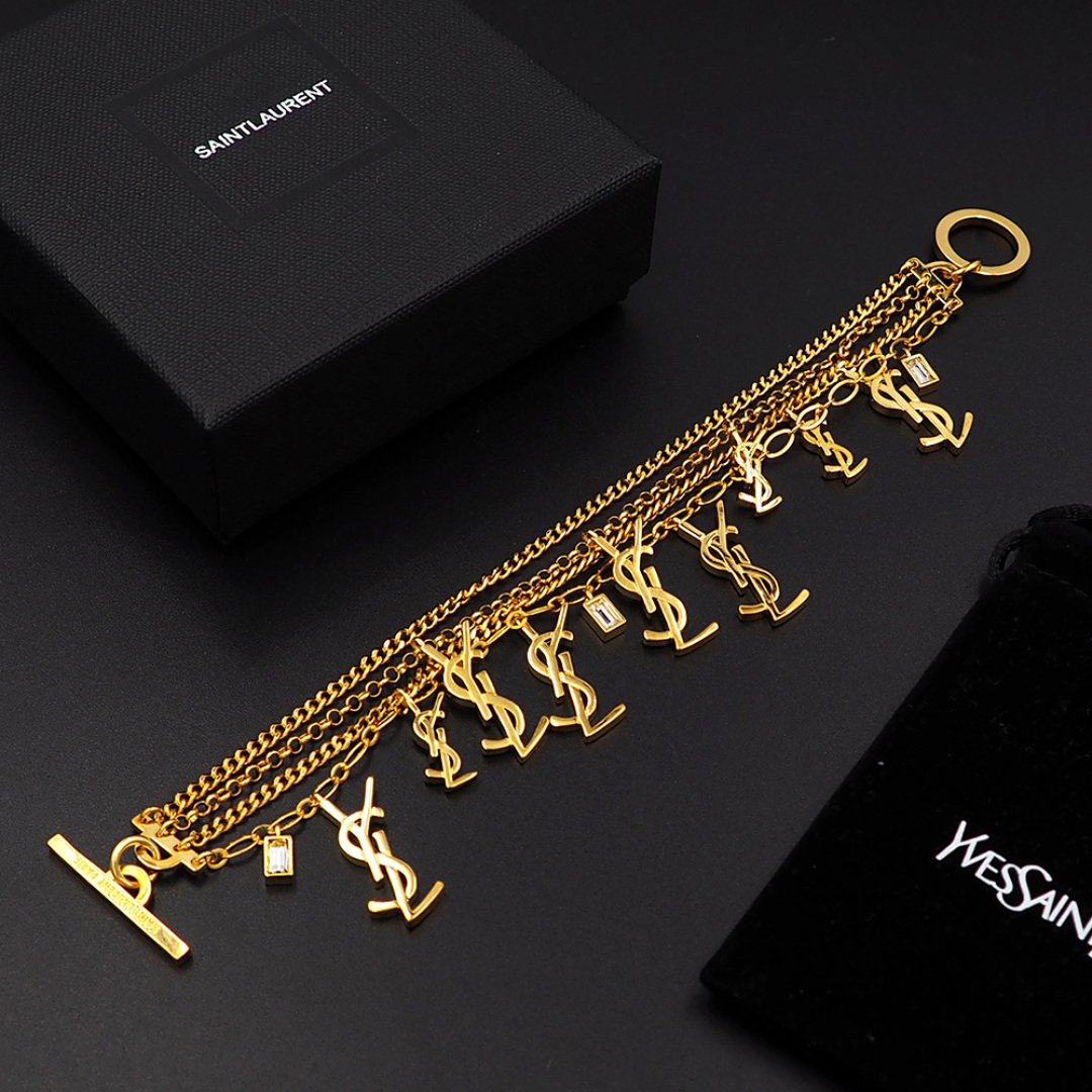 Saint Laurent Jewelry Bracelets Multilayer Chain Overlay YSL Letter Bracelet