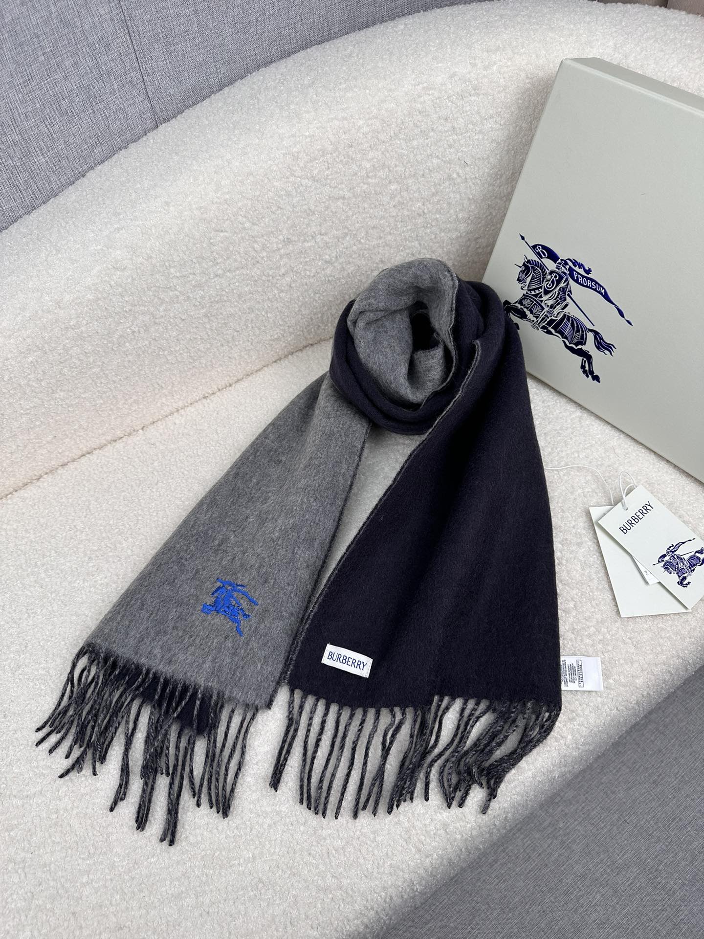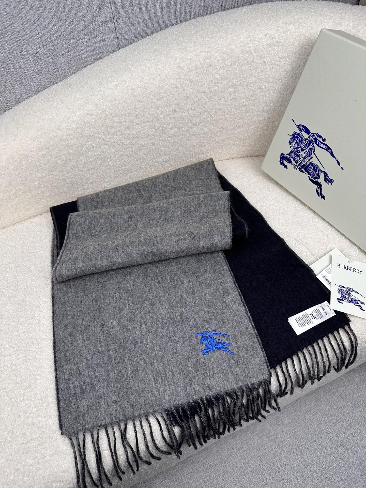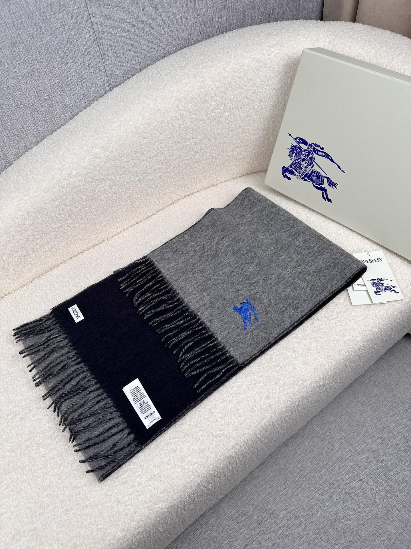 Burberry Embroidered Double-Sided Curve Scarf 100% Cashmere 30*180cm Accessories