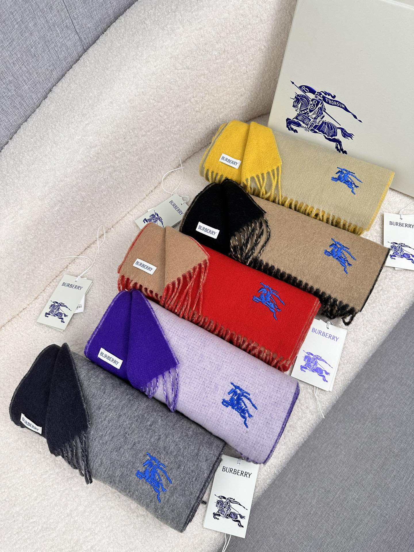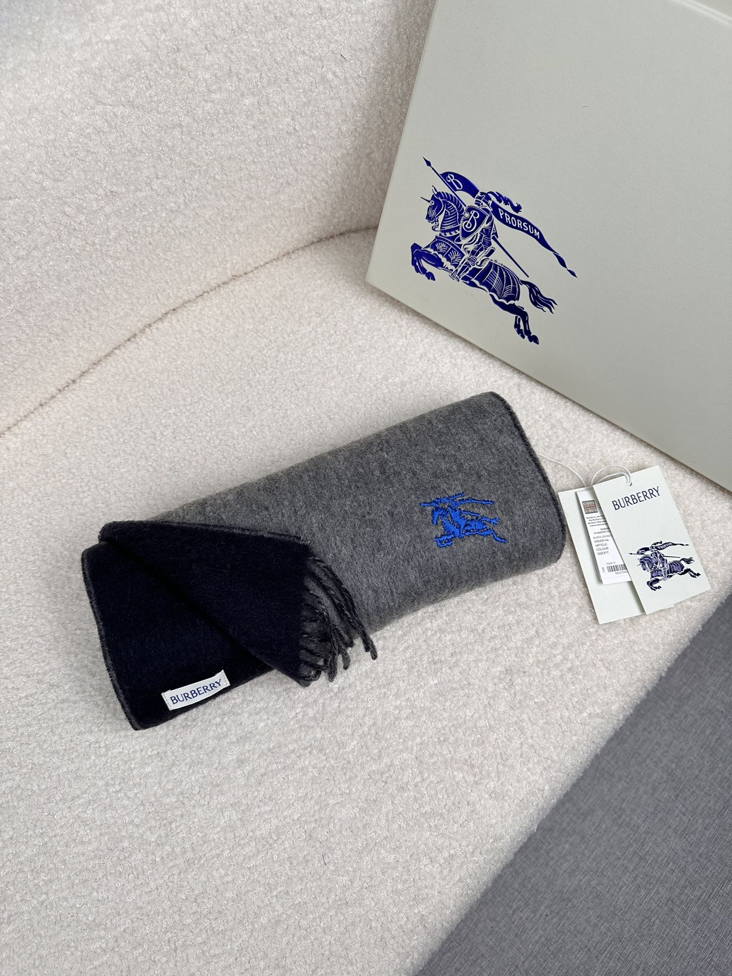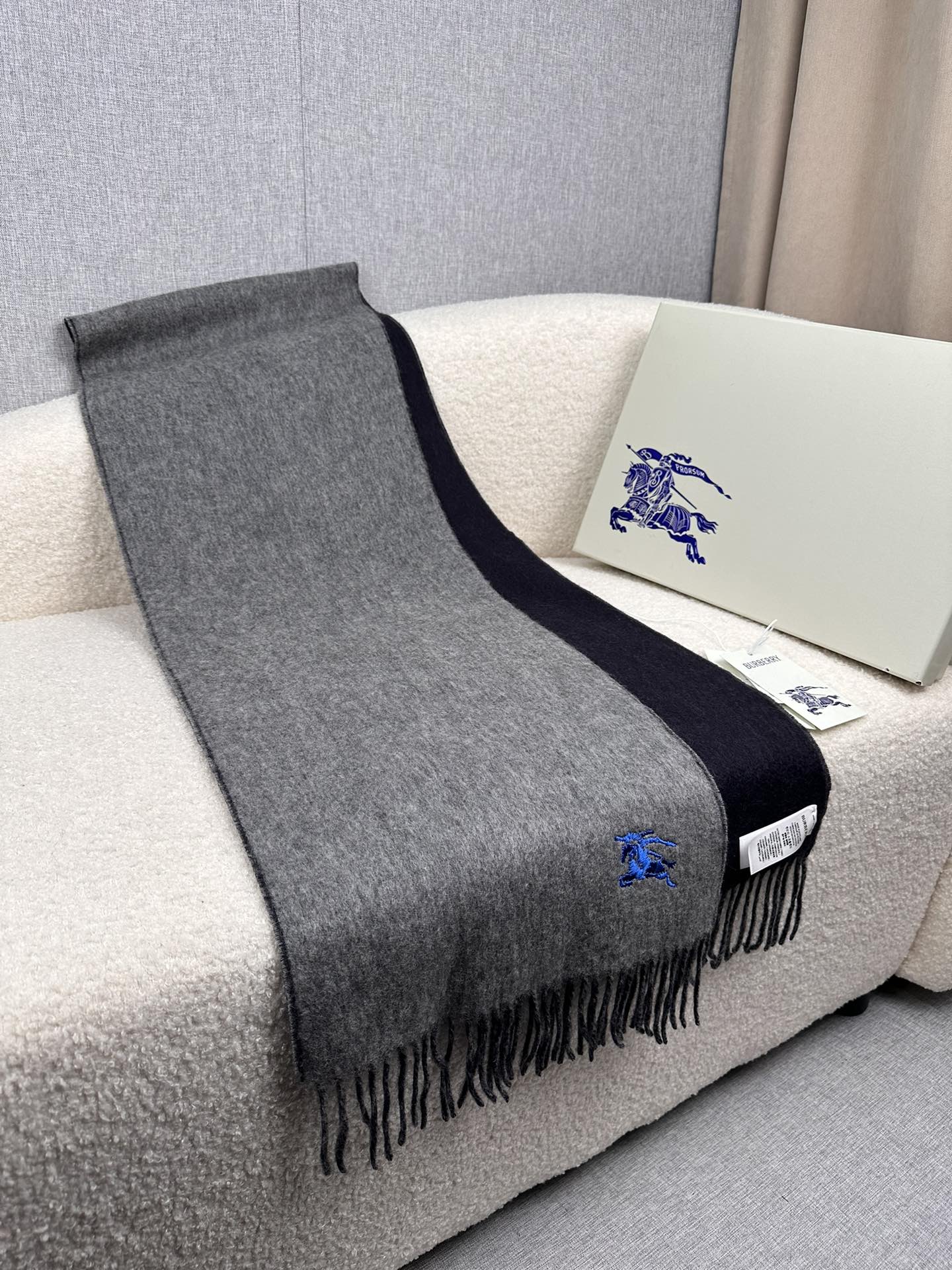 Burberry Embroidered Double-Sided Curve Scarf 100% Cashmere 30*180cm Accessories