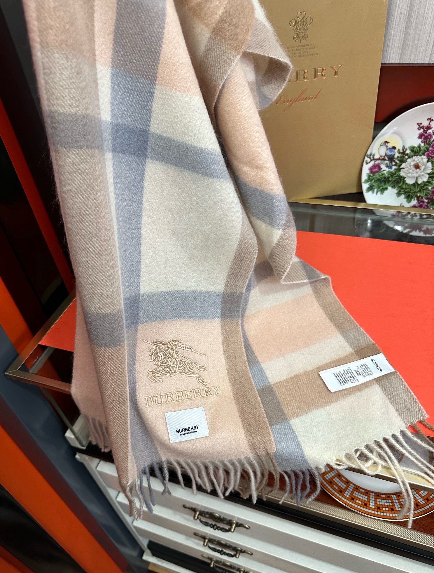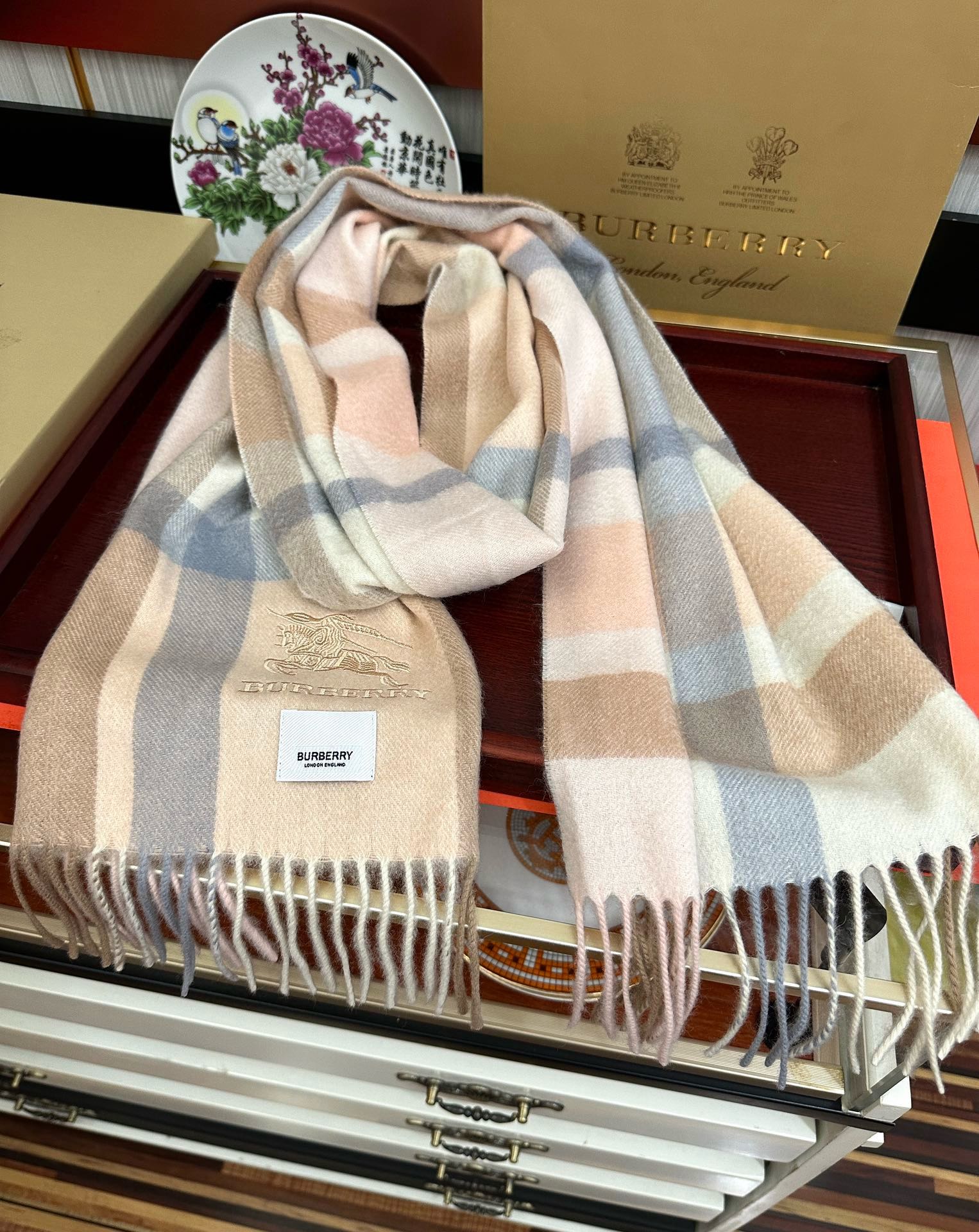 Burberry War Horse Embroidered Scarf 85% Cashmere 32*180cm Accessories