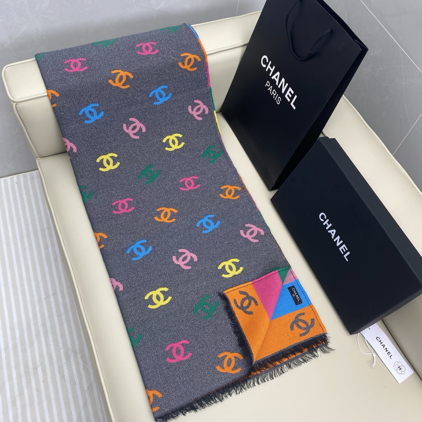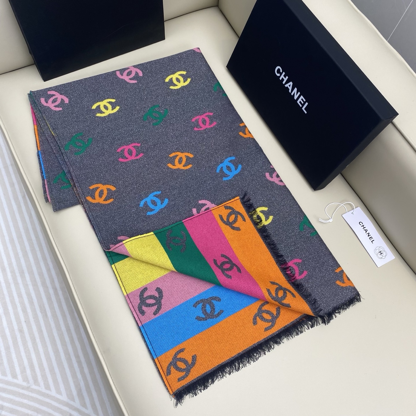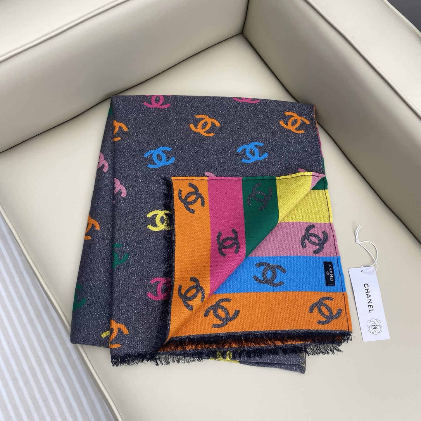 Chanel Scarf Rainbow Shawl 66% Cashmere 18% Sheep Wool 12% Silk 69*187cm Accessories