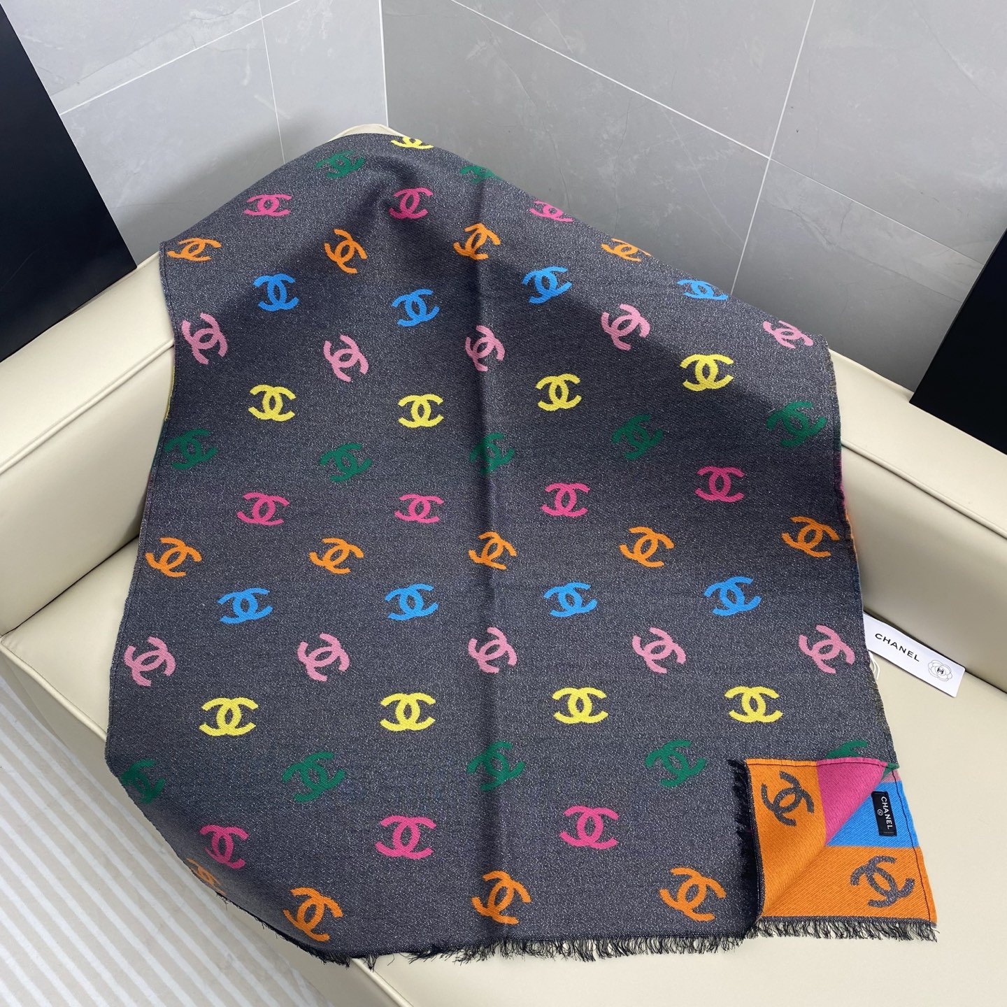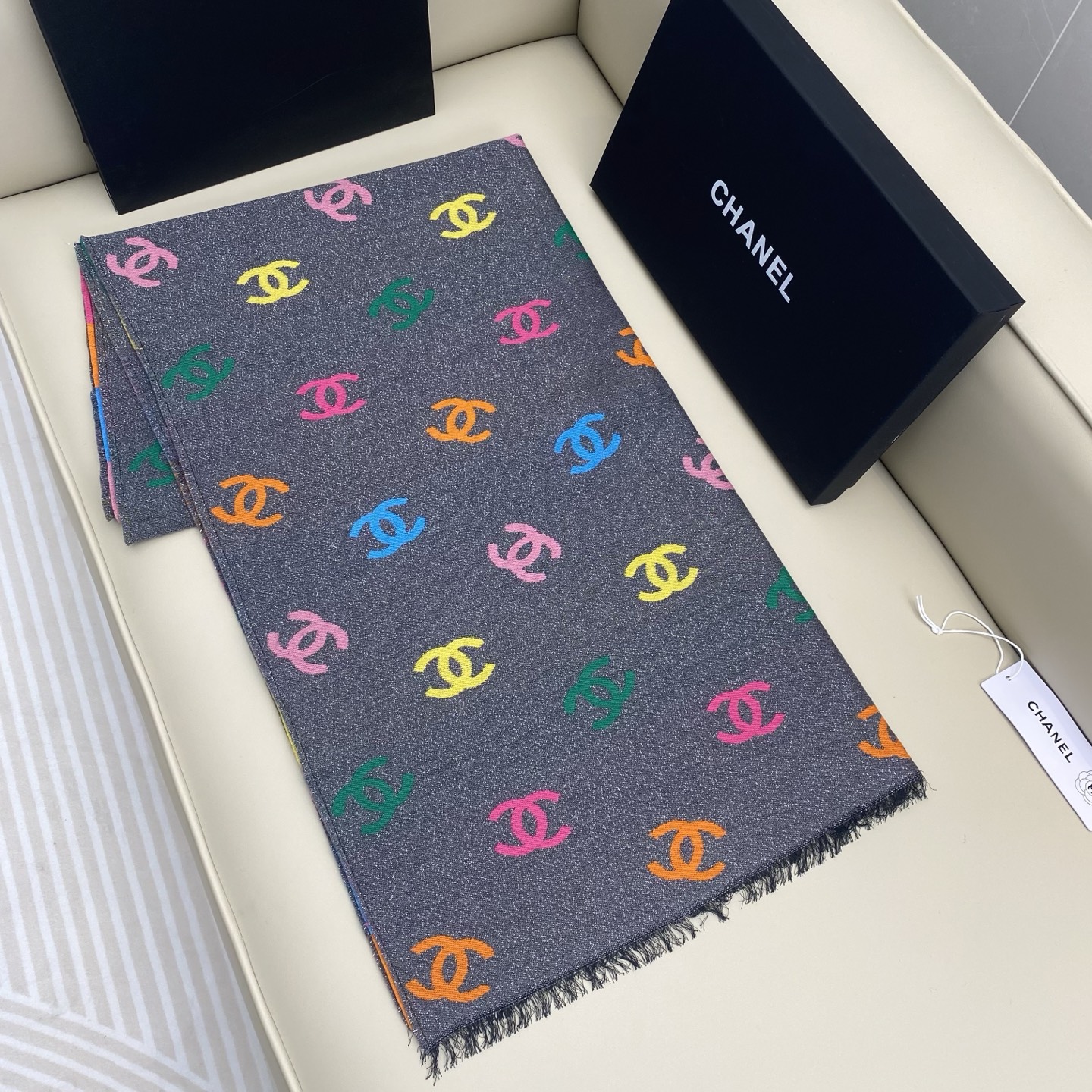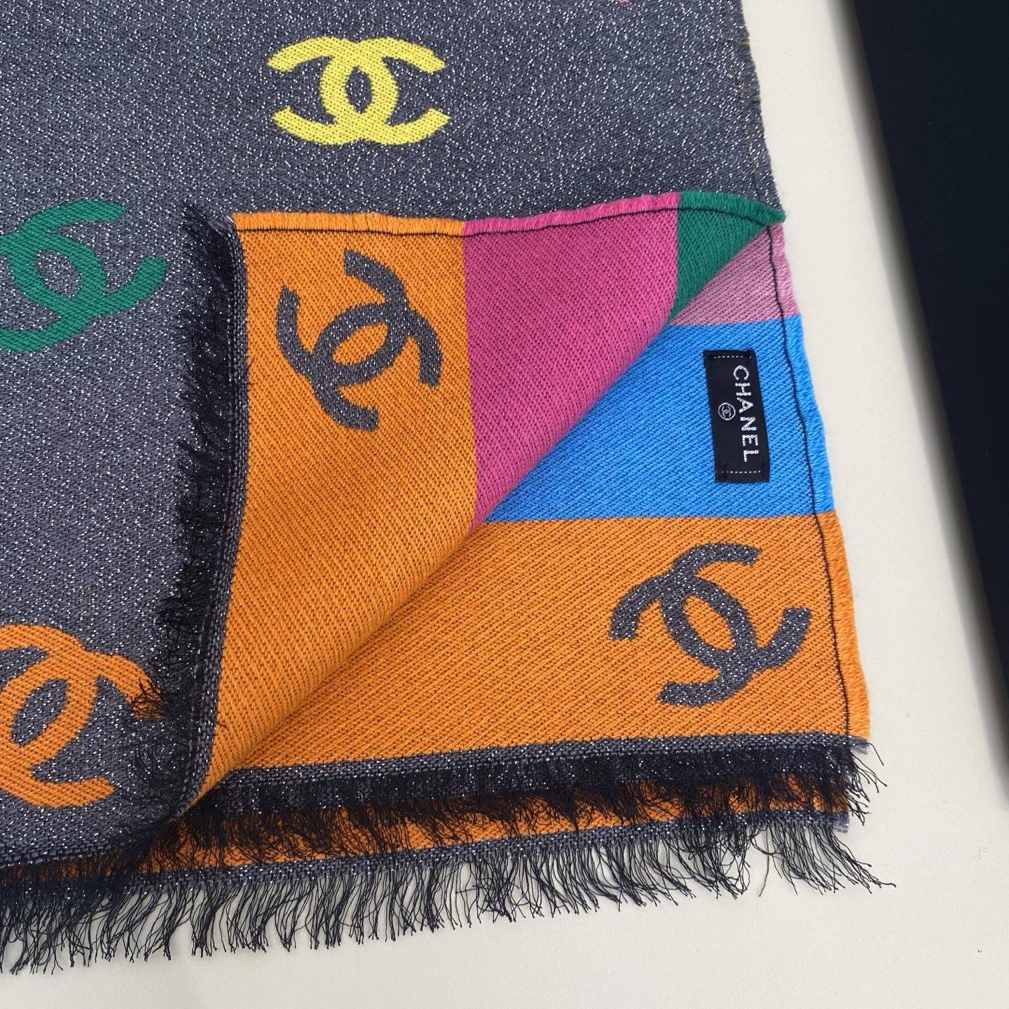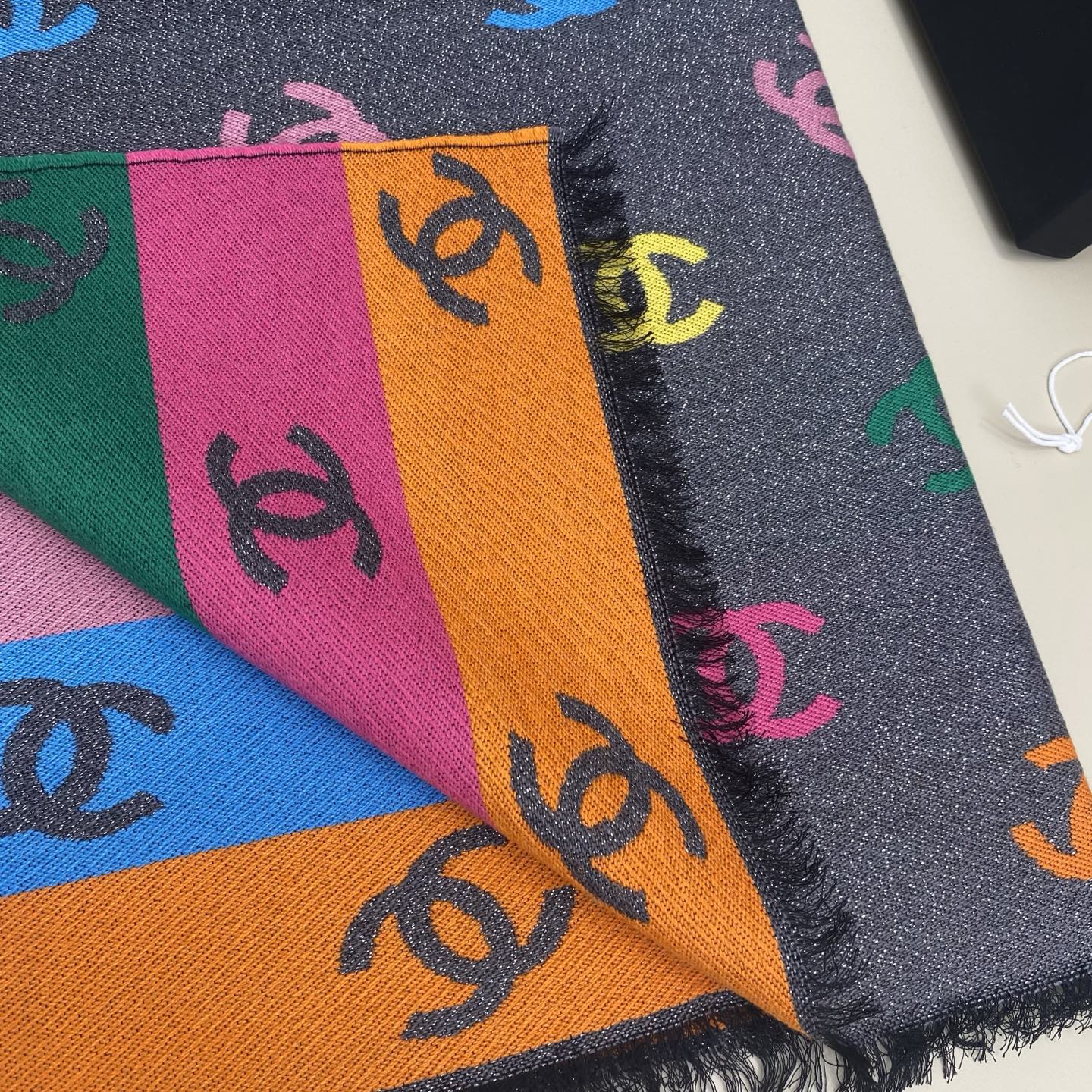 Chanel Scarf Rainbow Shawl 66% Cashmere 18% Sheep Wool 12% Silk 69*187cm Accessories