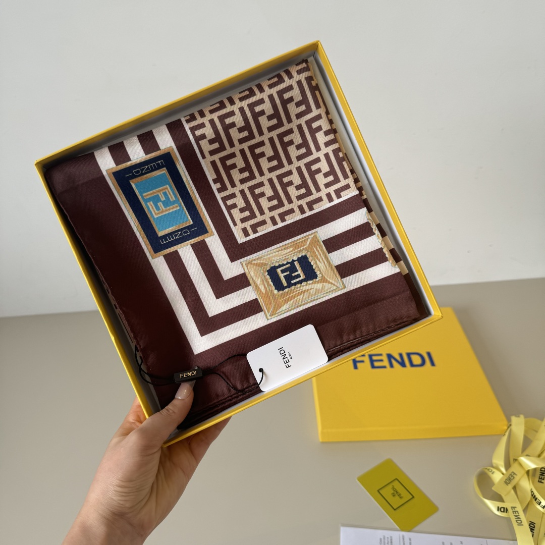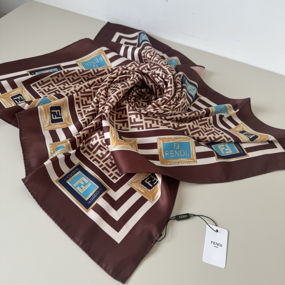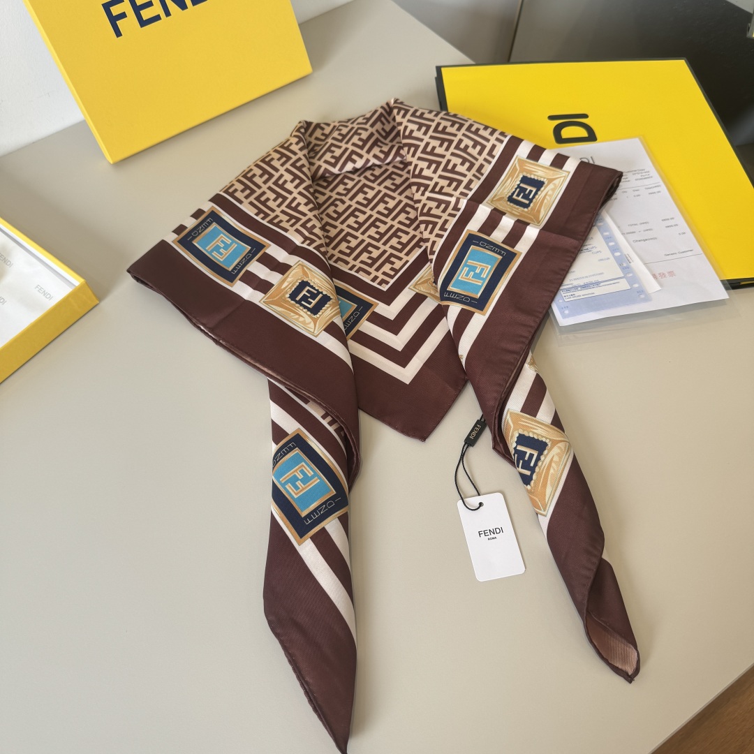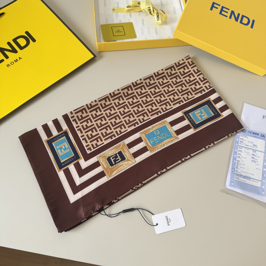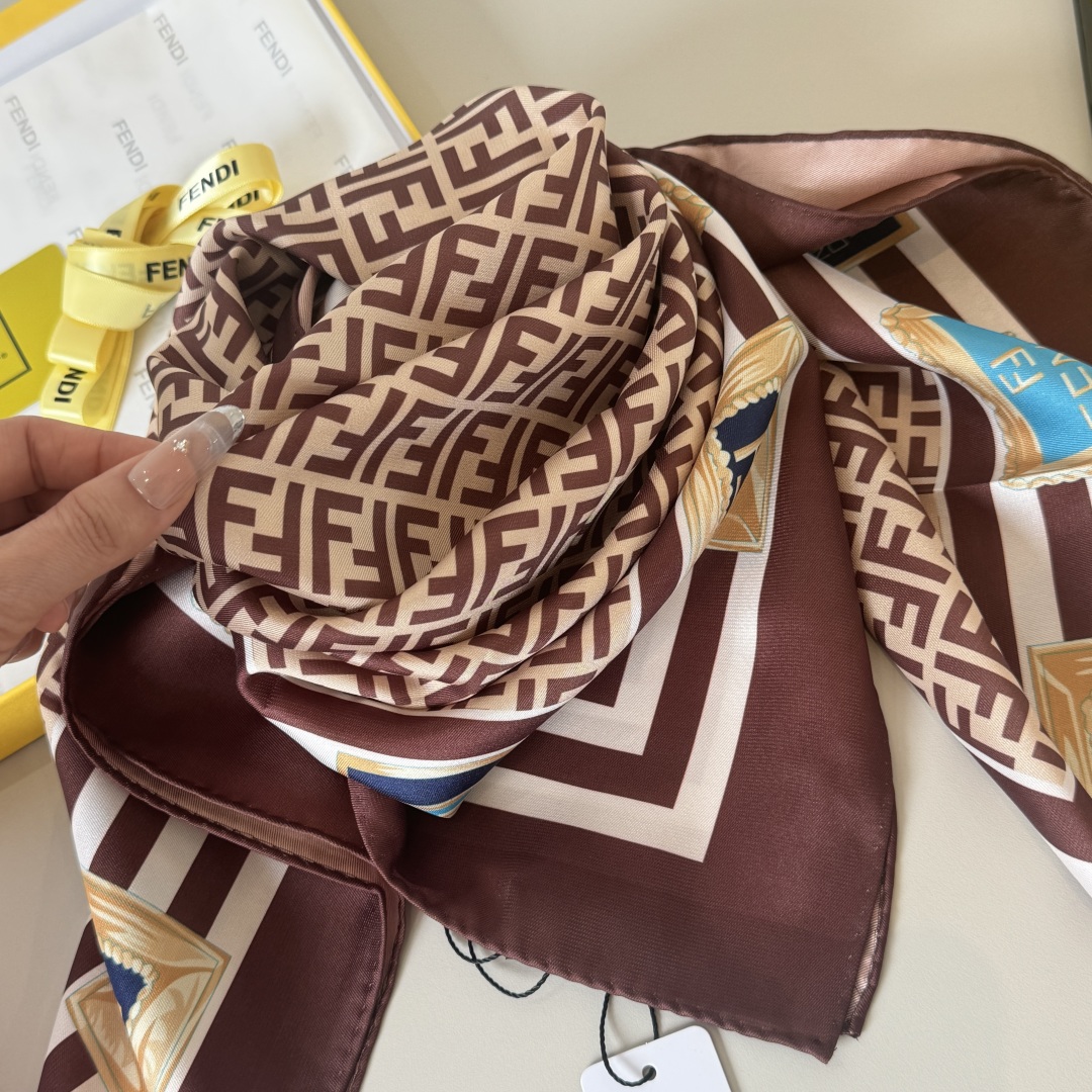 Fendi Scarf FF Lettering Printed Square Scarf 100% Silk 90*90cm Accessories