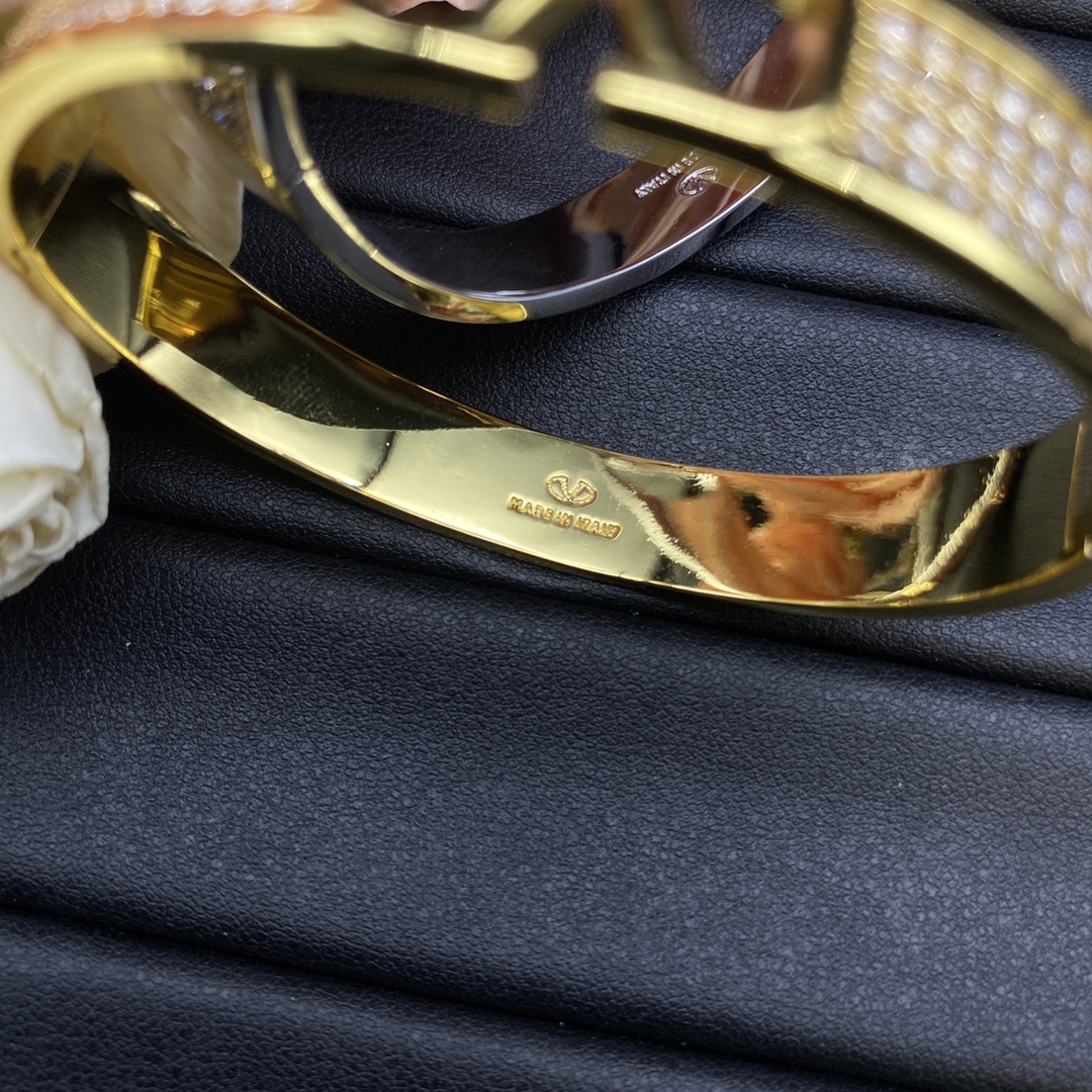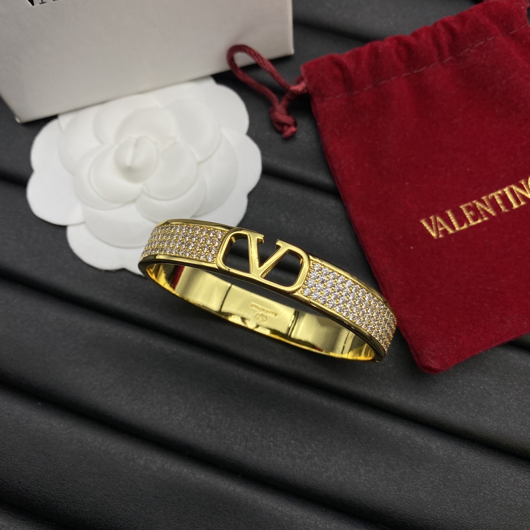Valentino Jewelry Bangle Hollow-Out V-Logo Bangle With Full Diamonds