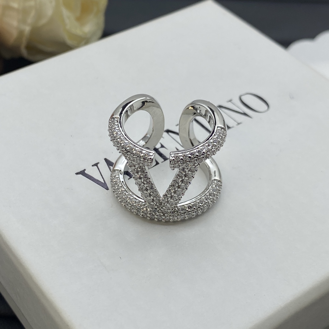 Valentino Jewelry Rings Rhinestone Full-Diamond V-Logo Adjustable Ring